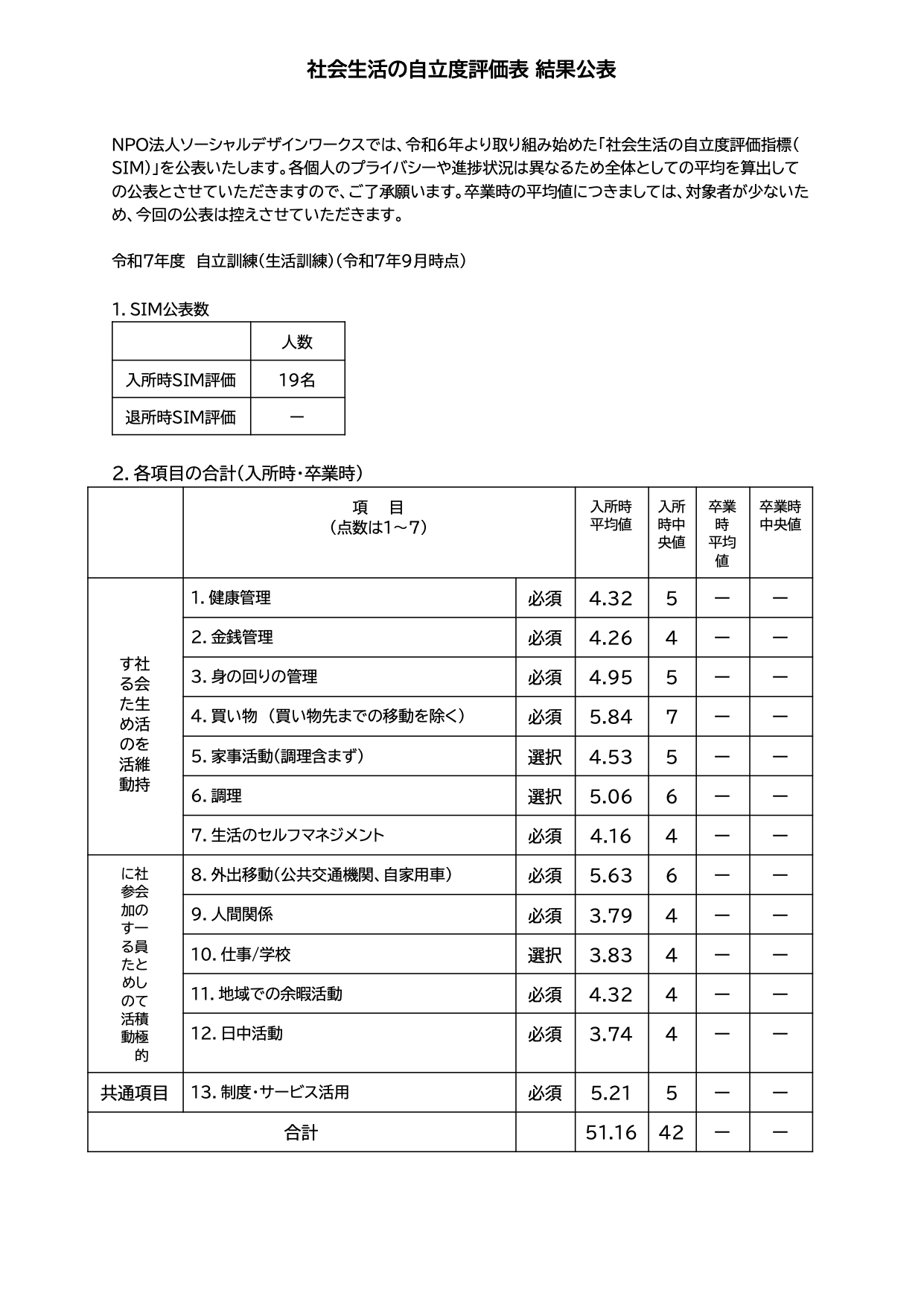 自立訓練では、身体や認知の機能、生活能力を高めるだけでなく、地域で安定した生活を送り、社会参加できるようサポートしています。SIMは、その成果を多角的に評価できる指標として活用されており、自立訓練の効果を測る基準として使われています。