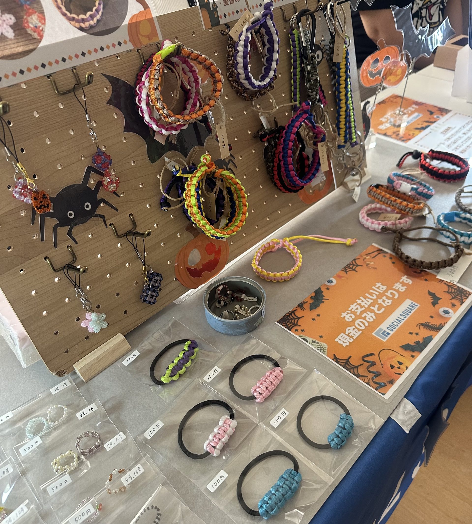 パラコードは、ものづくりカリキュラムの中でメンバーさんと一緒に制作したものです。すべて一点一点心を込めて仕上げた作品で、当日は多くの方に手に取っていただき、とても嬉しい時間となりました!