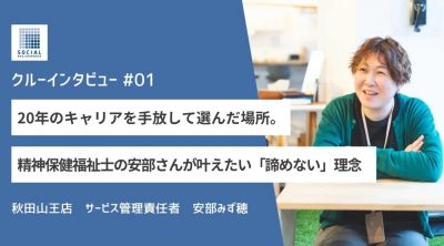 秋田山王店はSOCIALSQUAREの7拠点目、北東北初出店の2023年4月にオープン。自立訓練と就労移行支援の多機能型事業所として、「夢や目標を見つけたい」「働きたい」という思いに寄り添いご利用される方々の、のばしたいことや好きなことに取り組める「セレクトワーク」の時間を中心に、それぞれのニーズに合わせた支援をご提供いたします。また実習やボランティア活動など就職に近い環境で実践しながら、就職を目指していくことができます。定期的な面談を通してお一人おひとりの目標に沿ったプランを提案していきます。